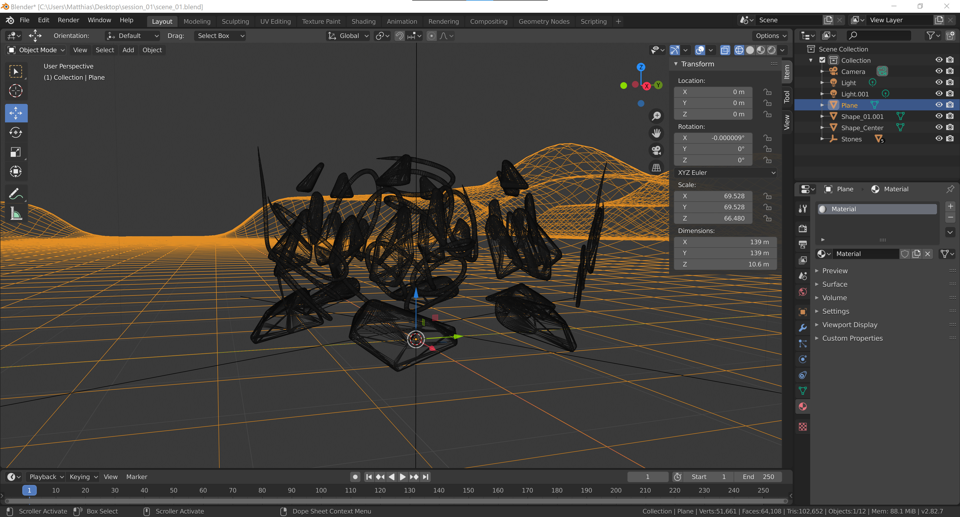 To get the interactions right takes a lot of experimentation and I am still not quite happy with what I have so far. But for me it worked best to have the drum tracks do a thing when played. And to have a separate channel just for adjusting the camera and overall look of the scene.